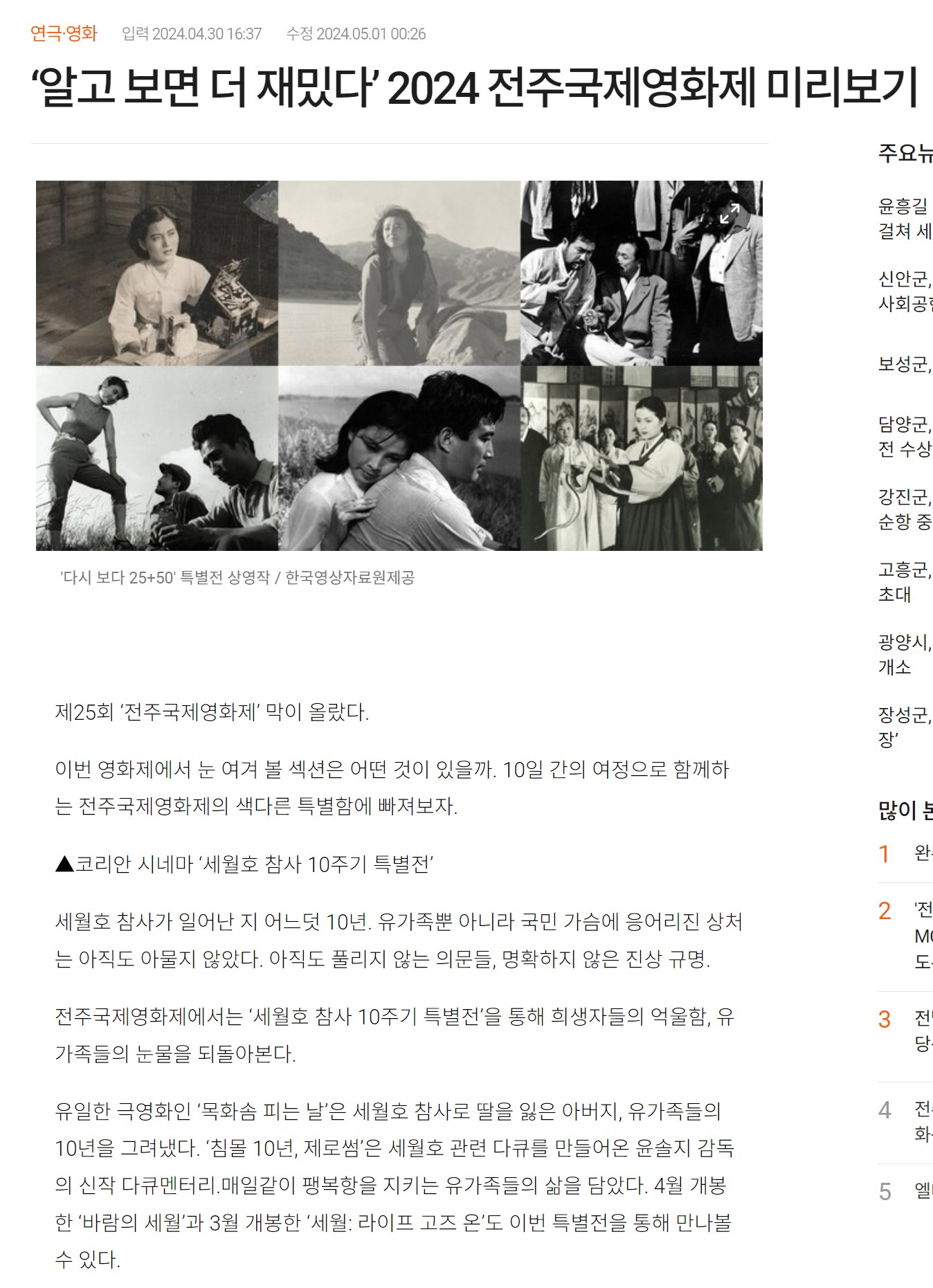 [전라일보] ‘알고 보면 더 재밌다’ 2024 전주국제영화제 미리보기